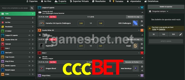 O cccbet oferece uma grande seleção de opções de apostas em e-sports com probabilidades competitivas